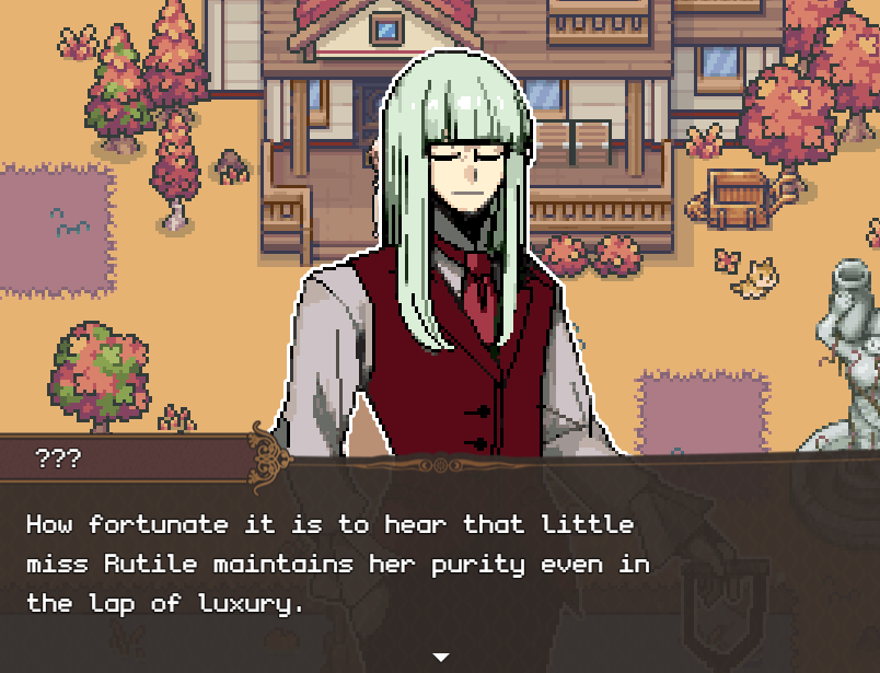 When I made Homekeeping, the ending with Gabriel had always been my original intention for it with the story centered around Rutile taking Alle's place. It's not addressed in the game jam version but when Rutile took the letter back from the fireplace, the two kept in touch through letters but in their correspondences, Rutile was still pretending to be Alle.